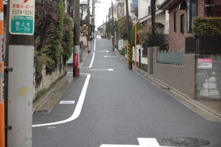 昨年、隣の桜上水の街に住んでいた、タッピングさんご一家を記念して、「タッピング坂」と命名して、標識を出しますということをお聞かせ頂いたが、その確認に行ってみるとすでに標識が立っていた。左の写真であるが、立派な標識である。坂の様子は下の写真である。