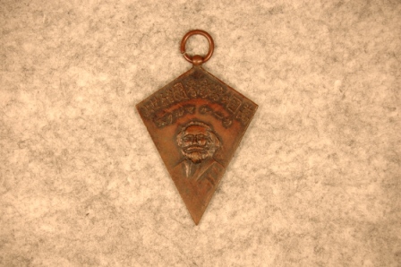 上の写真は、友愛会のバッジである。資料館の常設展に展示してある。ご存じのように、賀川豊彦は、米国より帰国した後、精力的に労働組合運動を行ったが、その大正10年の労働争議の後、労働組合運動の表舞台から身を引いたと考えられている。さて、その大正10年7月の大労働争議の直後ともいえる8月に、写真のような記念バッジが作成されていたのだ。よく見てみると、友愛会、関西労働総同盟のバッジに、「カール・マルクス」の肖像画がレリーフされているのである。