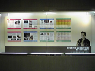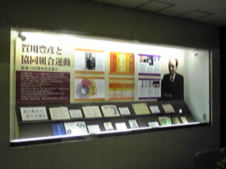 家の光協会さんには、『乳と蜜のながるる郷』、『劇画 死線を越えて』と、たてつづけに、関係書籍を刊行して頂いている。そして、劇画の刊行に合わせて、1Fのロビーにあるガラスケースに、賀川豊彦の特別展示をして頂いた。松沢資料館からもいくつか資料を貸し出しさせて頂いた。