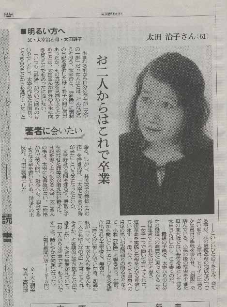 さて、同じ日の朝日新聞の読書欄には、太田治子さんの記事が掲載されていた。これも何かのご縁であろう。