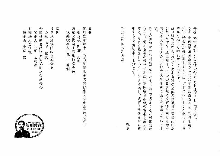 さる、2009年7月15日に開催された、共栄火災本社ホールでの、講演会・上映会に当たっては、たくさんの方のご来場を頂き、まことにありがとうございました。上記写真にありますように、謹んで御礼申し上げます。