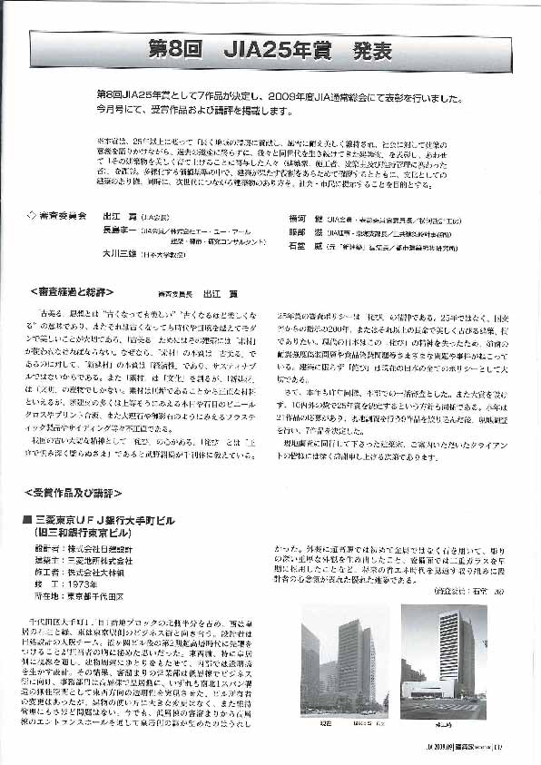 (社)JIA(日本建築家協会)25年賞を、当館が受賞した。同賞は以下の趣旨による。