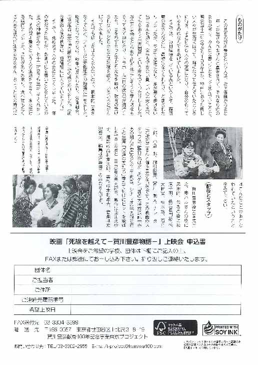 皆さま待望の、映画「死線を越えて」の短縮版が出た。すでに各地で上映会を開催頂いているが、今後ご希望のところがあれば、是非ご相談頂きたい。その際の宣伝用、あるいはパンフレット変わりにチラシを新規に作成した。合わせてご活用頂ければありがたい。