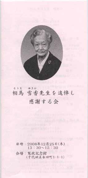 <写真:「相馬雪香さんを追悼し感謝する会」での配布物より>